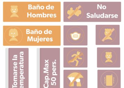 La señalética que se hizo para la Iglesia 10 de Mayo, se realizo de manera homogénea donde no se perdiera su similitud, en cuánto a los pictogramas y señalética como tal. Su elaboración fue por medio de una demarcación positiva y negativa.